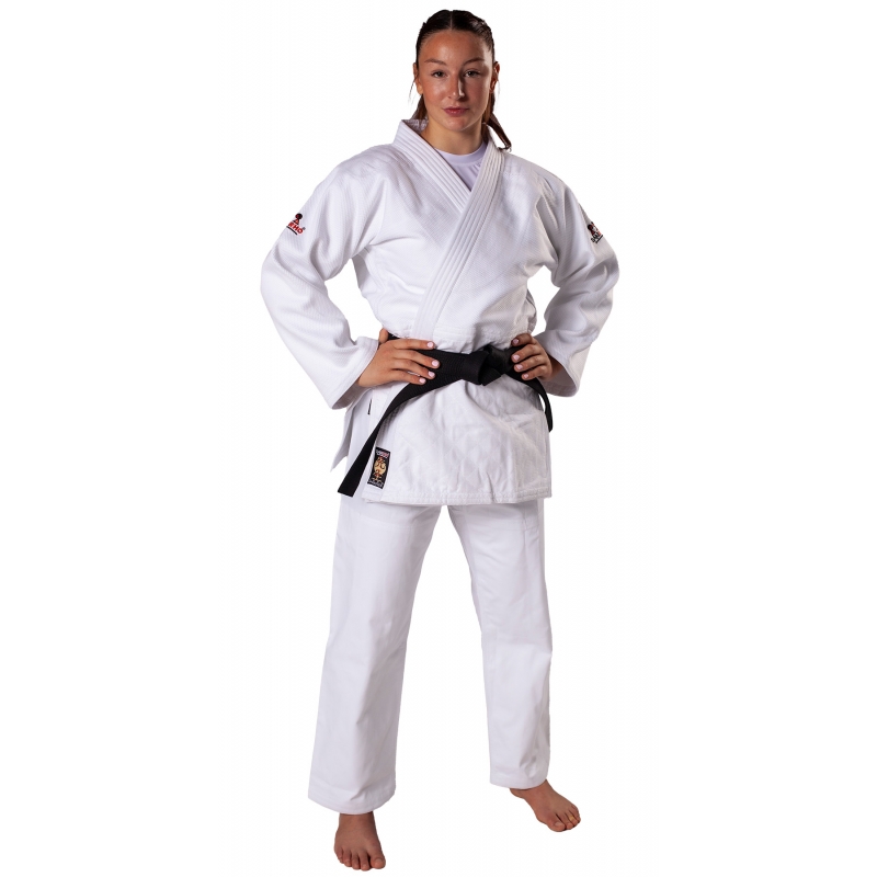 Středně těžké kimono je určené na závody nebo trénink vyrobené ze 100% bavlny. Kabát je dvojitě tkaný s gramáží 750 g/m² se zesíleným hrudníkem, rameny a v podpaží. Límec je ideální na tréninky, protože je stejně tenký a silný jako na našich jedno tkaných kimonech, ale stále je pohodlný k uchopení. Kimono je zesílené na hrudníku, ramenou, kolenou a v podpaží. Kalhoty mají stahovací šňůrku v pase.