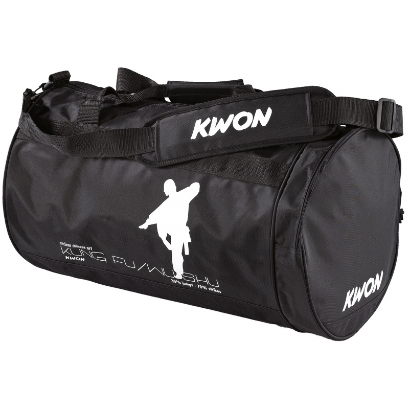 Malá taška KWON s motivem kung-fu v černé barvě má popruh přes rameno a boční kapsu na zip. Tato taška je ideální volbou pro dítě na trénink. Pohodlně se do ní vejde dětské kimono, přezůvky a láhev s pitím.