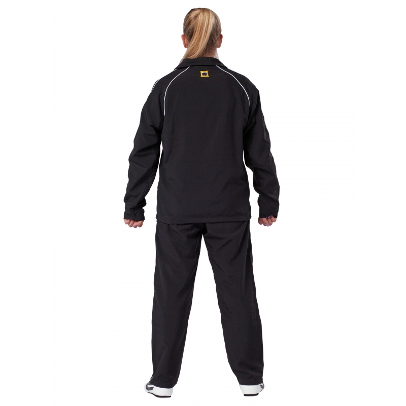 Vyrobená z ultra lehkého materiálu (100% polyester) s prodyšnou síťovinou. Kalhoty a bunda mají dvě kapsy. Na zádech má souprava dostatečné místo na umístění loga.